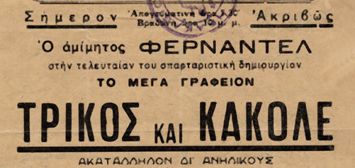 Εγκαινιάζεται το θερινό θέατρο «Πολυθέαμα» του Αλεξ. Πουλακάκη στην Πλ. Πρίγκηπος (σημερινή Πλ. Ελευθερίας).
